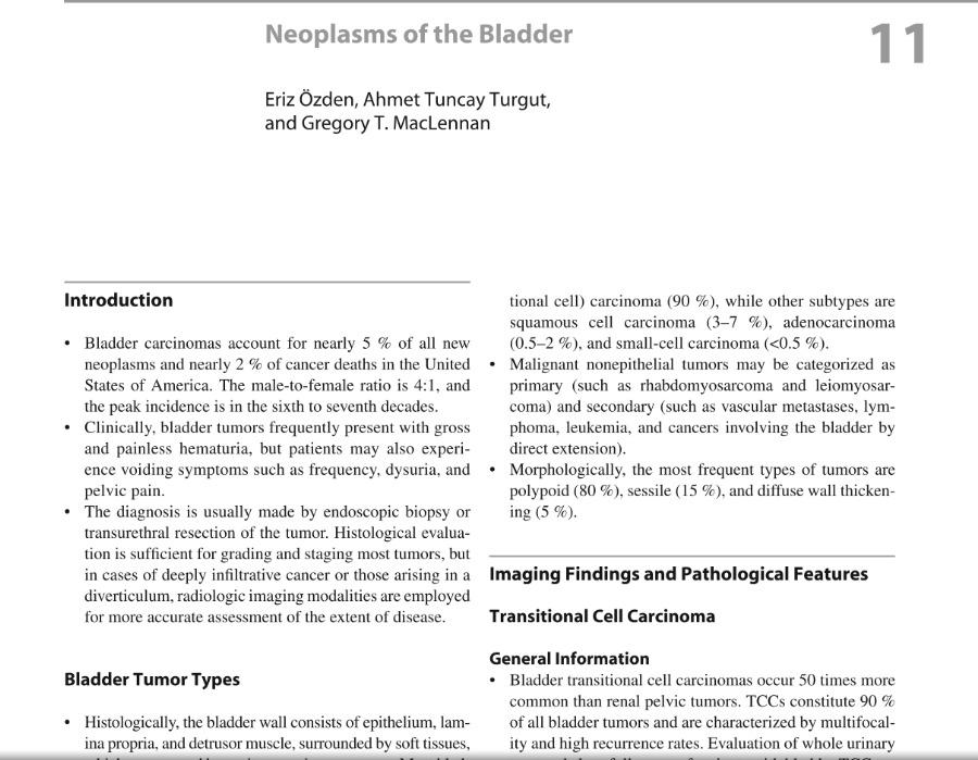 2. Özden E, Turgut AT, Maclennan GT. Neoplasms of the bladder. Chapter 11. Pgs;297-328 in, eds: Dogra VS, MacLennan GT. Genitourinary Radiology: Kidney, Bladder and Urethra. London. Springer-Verlag. 2013.