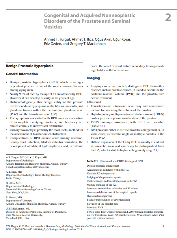 3. Turgut AT, Ilıca AT, Akın O, Koşar U, Özden E, MacLennan GT. Congenital and acquired Nonneoplastic Disorders of the Prostate and Seminal Vesicles. Chapter 2. in, eds: Dogra VS, MacLennan GT. Genitourinary Radiology: Male Genital Tract, Adrenal and Retroperitoneum: The Pathologic Basis. London. Springer -Verlag. 2013.